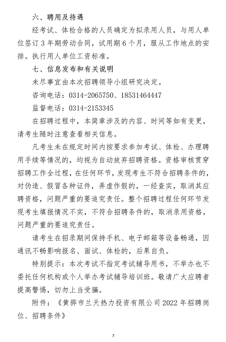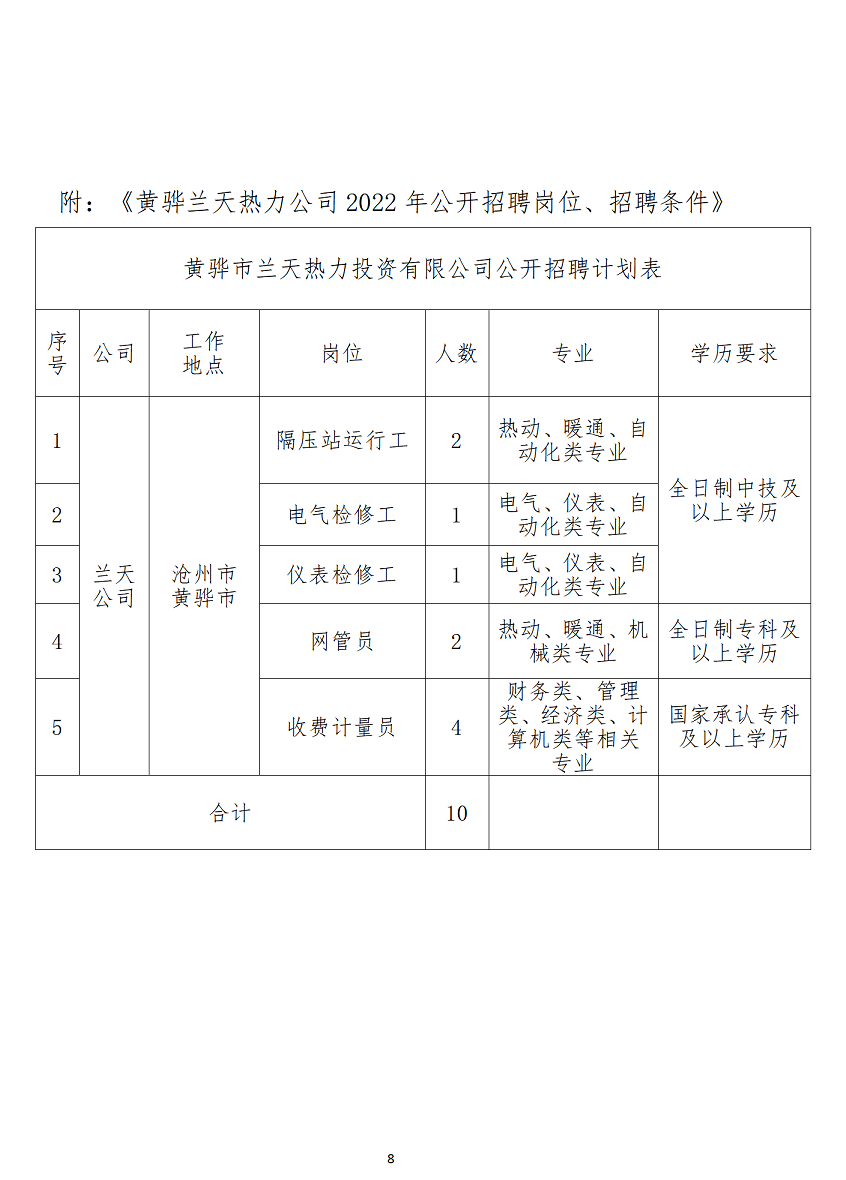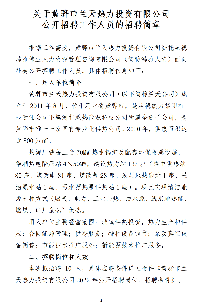 關(guān)于黃驊市蘭天熱力投資有限公司公開招聘工作人員的招聘簡章