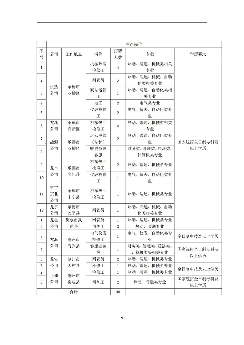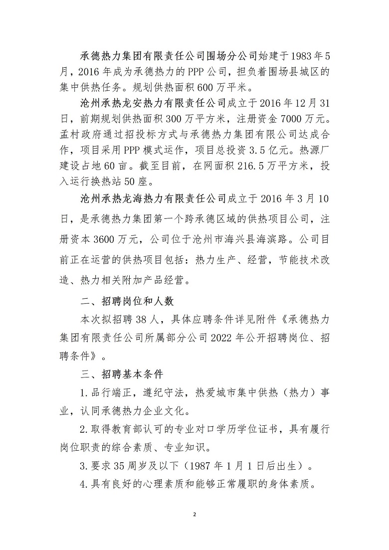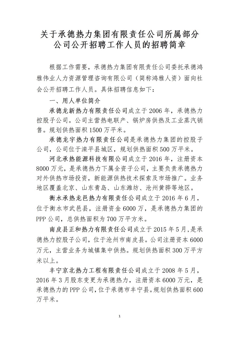 關于承德熱力集團有限責任公司所屬部分公司公開招聘工作人員的招聘簡章