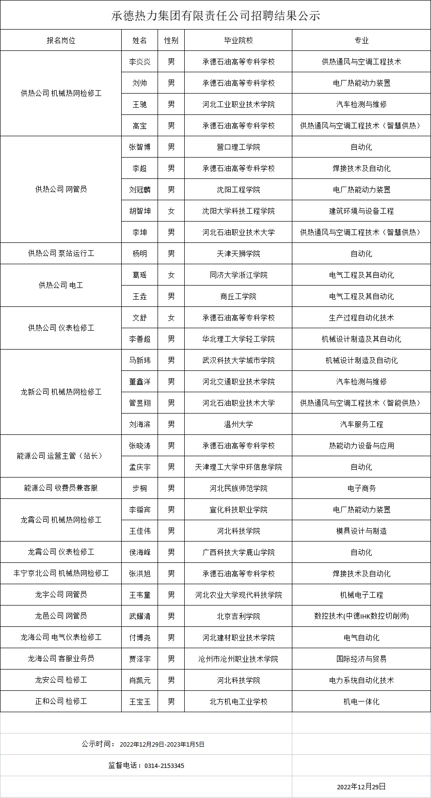 承德熱力集團有限責任公司招聘結(jié)果公示
